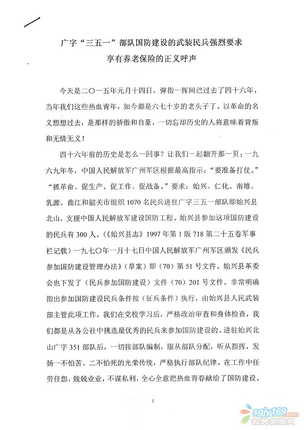 廣字"351"部隊國防建設的武裝民兵強烈要求享有養(yǎng)老保險的呼聲